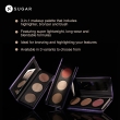 • Each of the 3 powders in the SUGAR Contour De Force Face Palette has excellent shading, blends effortlessly with intense color, and lasts for hours without flaking or caking.